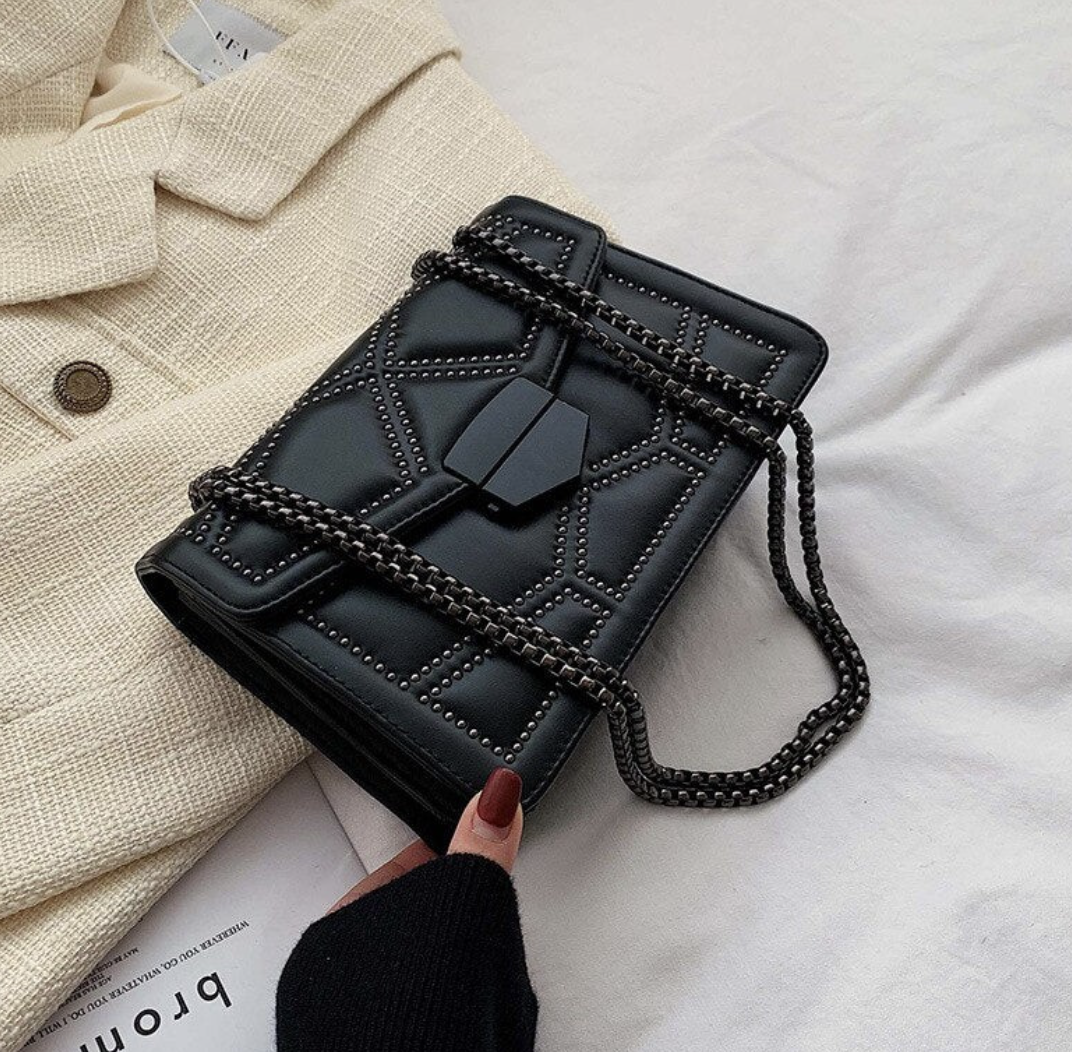 Dianna - Elegant Nitert Liten Skulderveske med Kjedestropp med Nitter for Dame