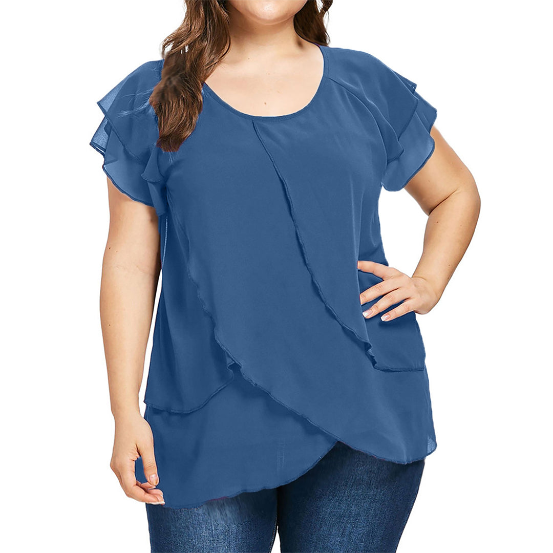 Dam Blus med Rufsade Ärmar och Asymmetrisk Nederkant