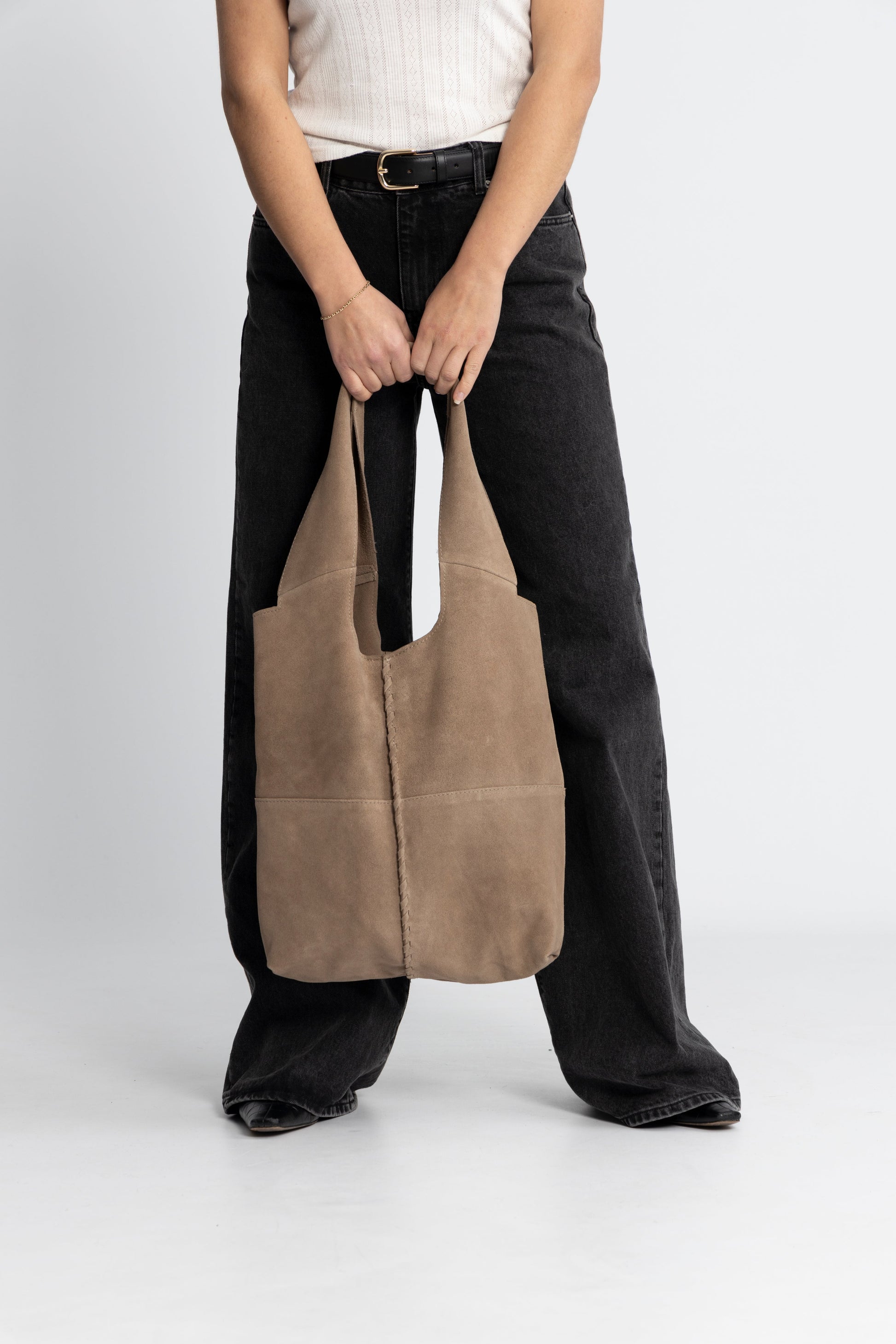 Denna boho-inspirerade väska är designad för att kombinera stil och funktionalitet. Tillverkad av mjuk mocka, erbjuder den en avslappnad men ändå elegant look som passar perfekt för både vardag och fest. Med sina långa handtag är den lätt att bära och ger en bekväm känsla oavsett tillfälle.
