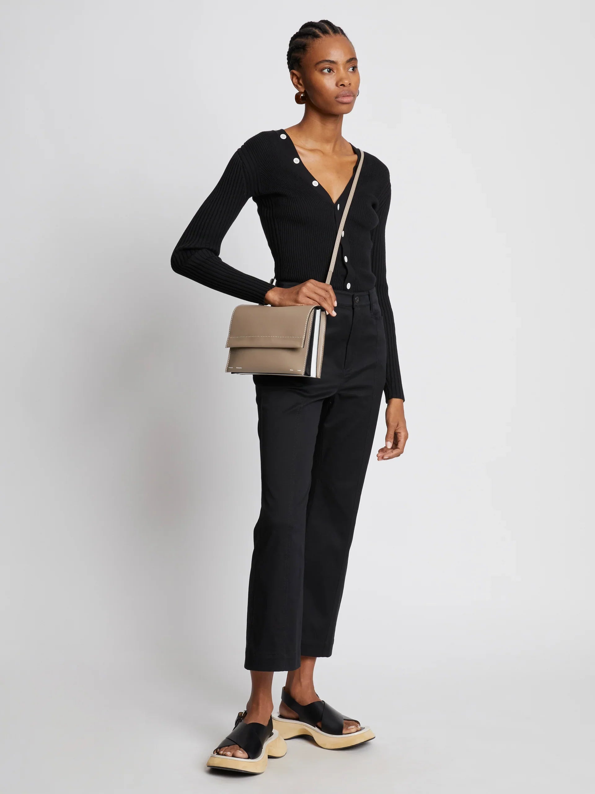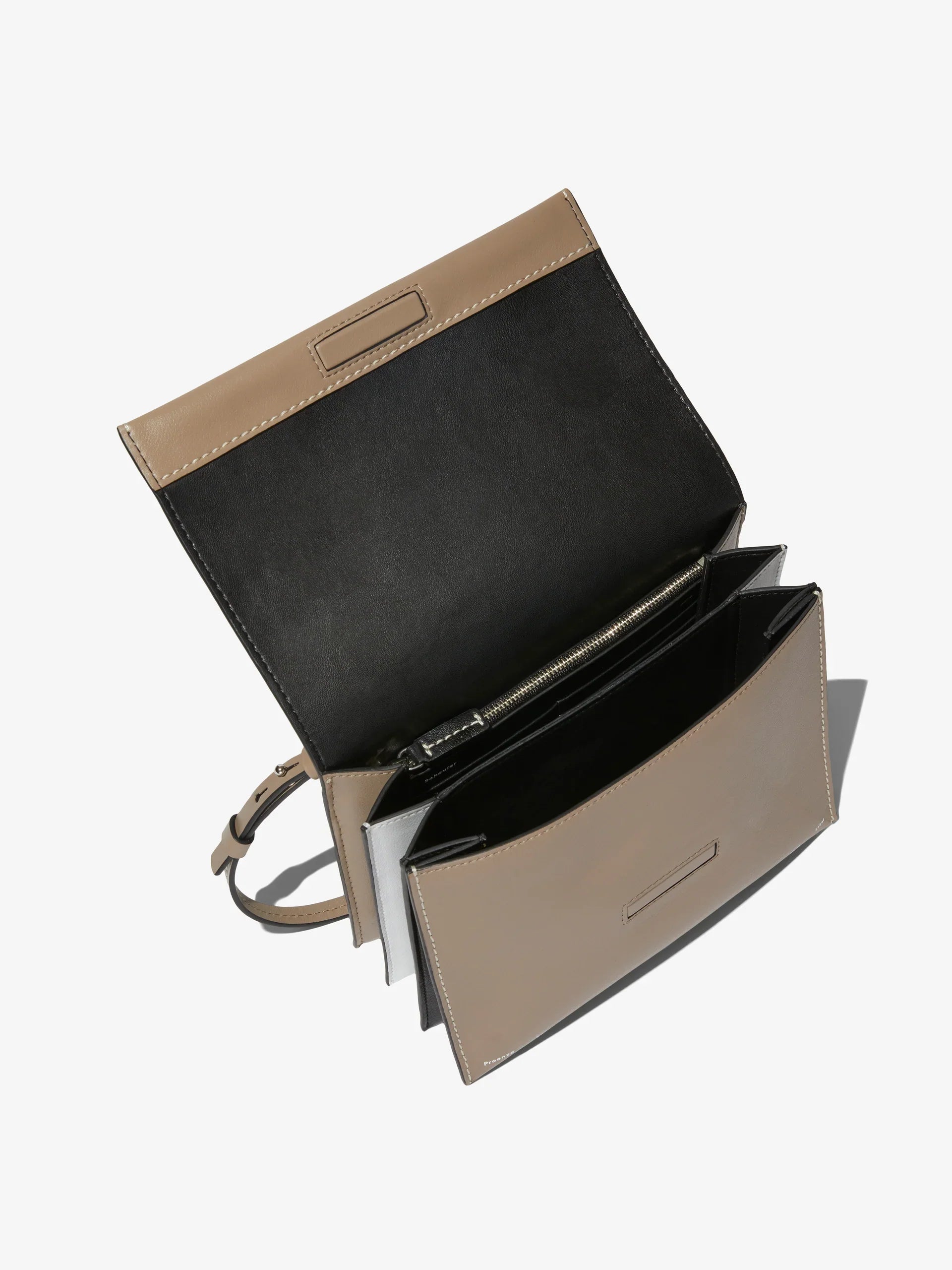 Denna dragspelflikväska är en perfekt kombination av stil och funktionalitet. Tillverkad av slätt läder, erbjuder väskan en strukturerad silhuett som är både modern och tidlös. Med tre rum och kontrasterande sömmar är den idealisk för både vardag och speciella tillfällen.