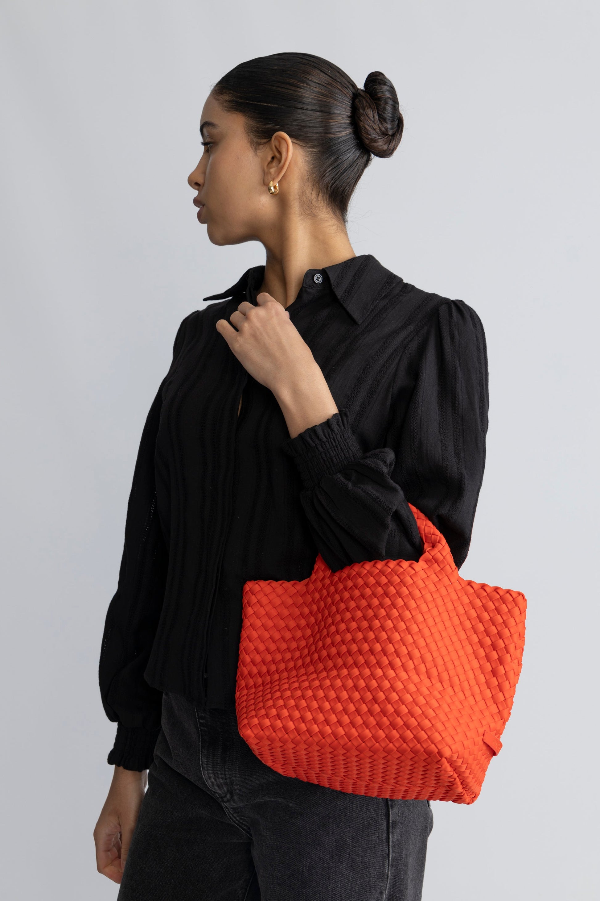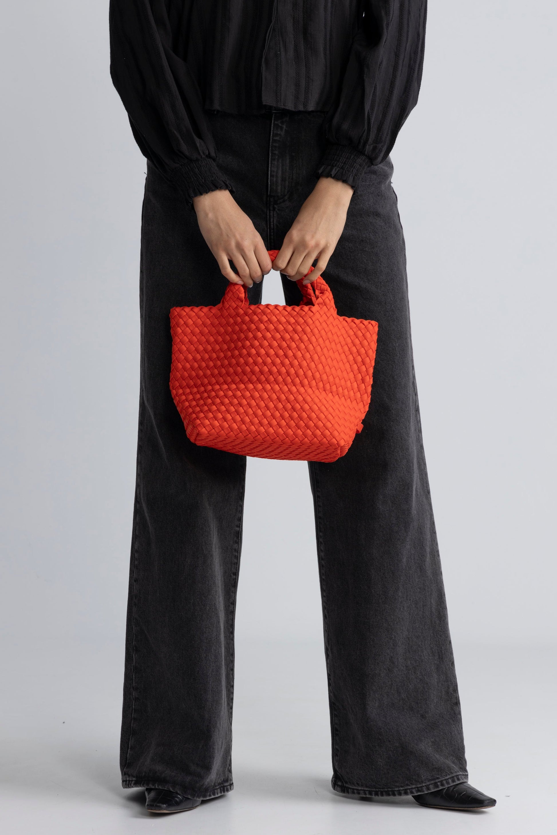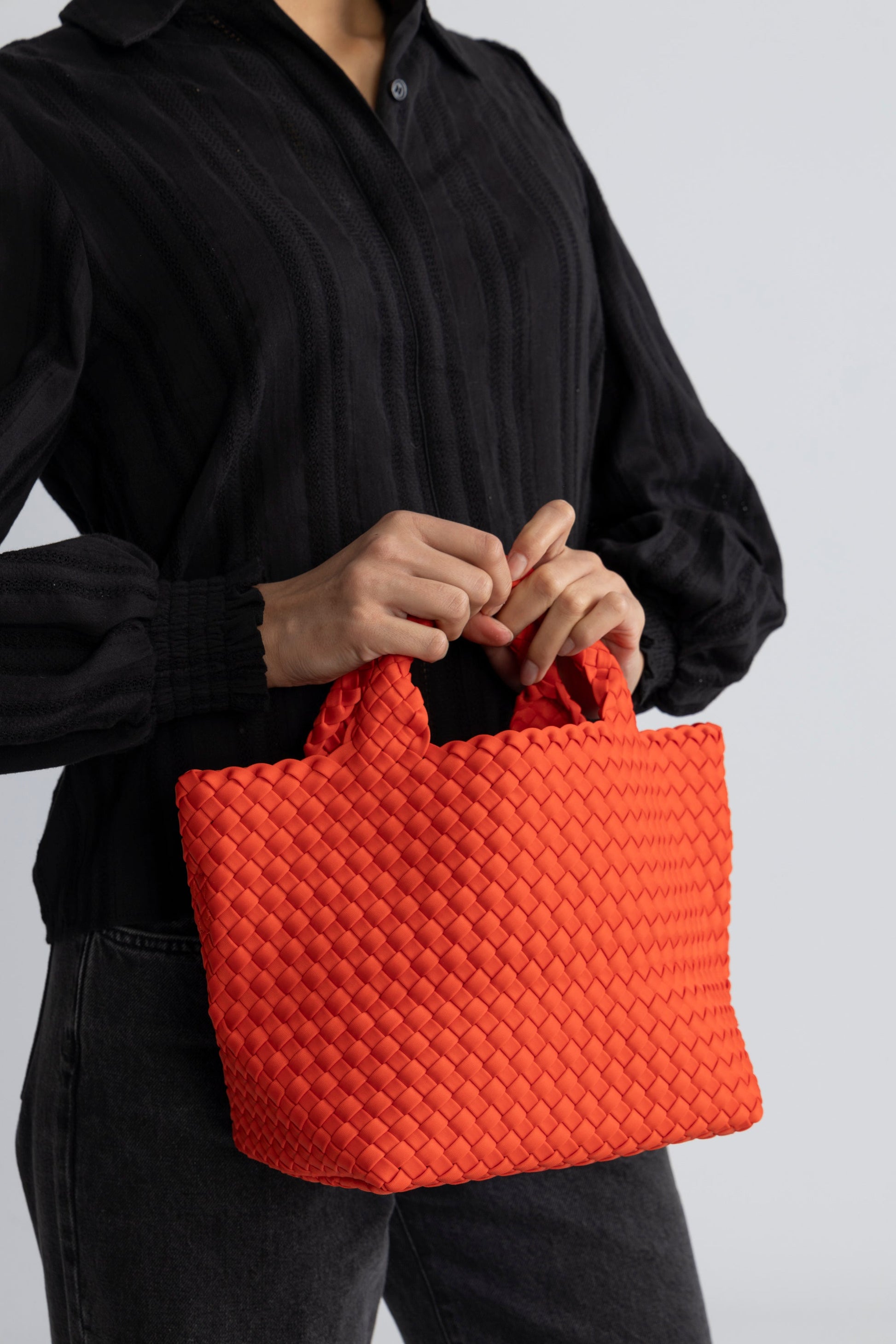 Dam Praktisk Handvävd Neopren Handväska med Avtagbar Axelrem och Stort Huvudrum