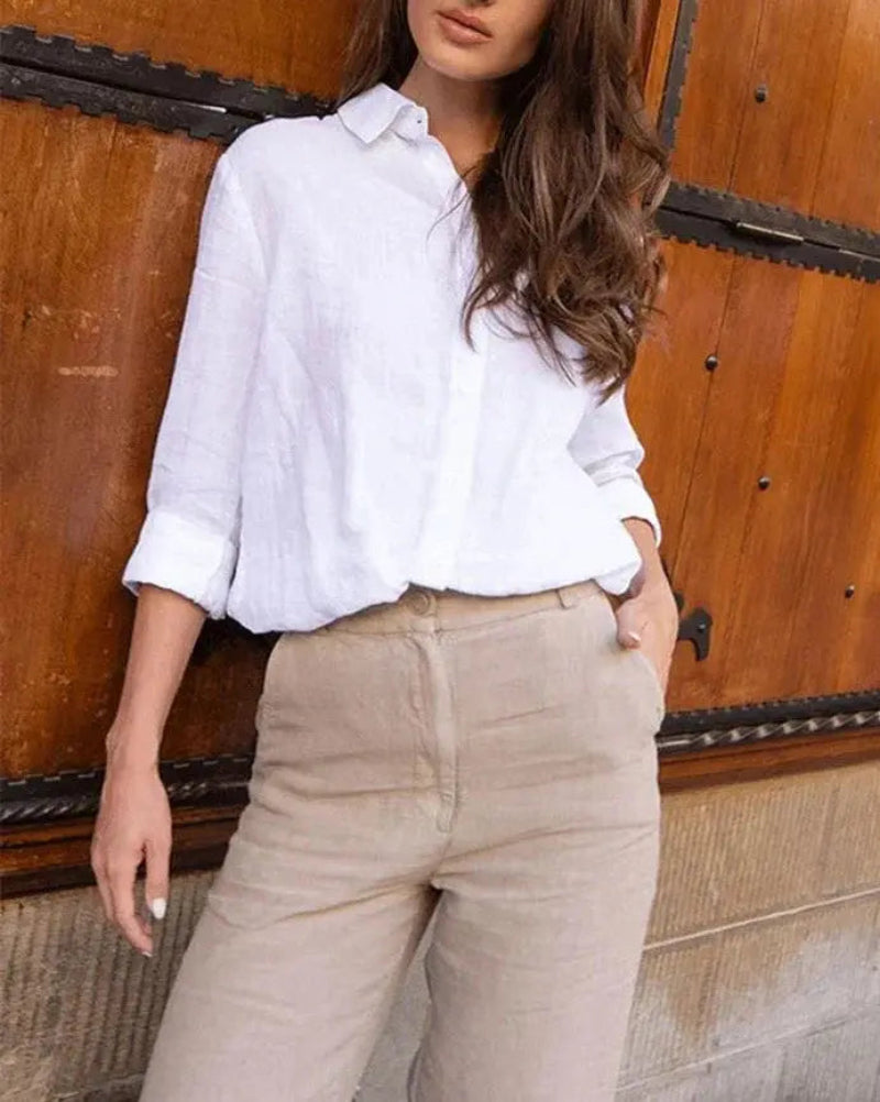 Denna skjorta med knäppning har en enkel design som gör den lätt att använda vid olika tillfällen.