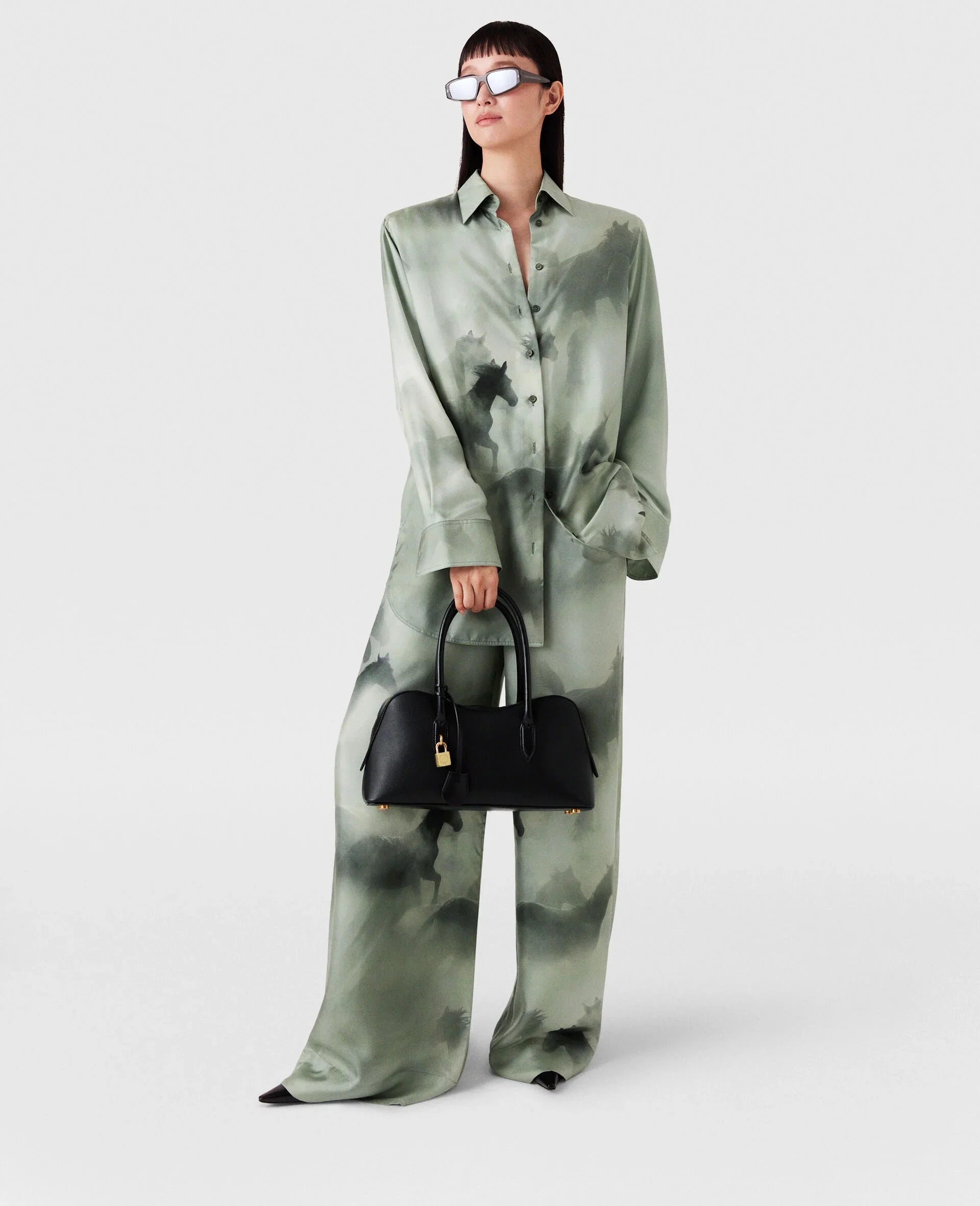 Denna handväska kombinerar stil och hållbarhet med sin skulpturala silhuett och är tillverkad av innovativa, grymhetsfria material. Perfekt för både vardag och speciella tillfällen, erbjuder väskan en elegant lösning för att bära dina nödvändigheter. Den är designad för att rymma en telefon, plånbok och andra dagliga föremål, vilket gör den både praktisk och stilren.