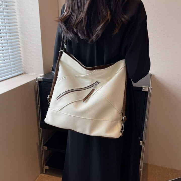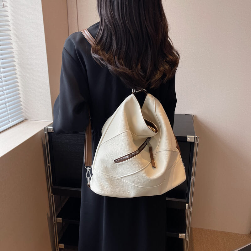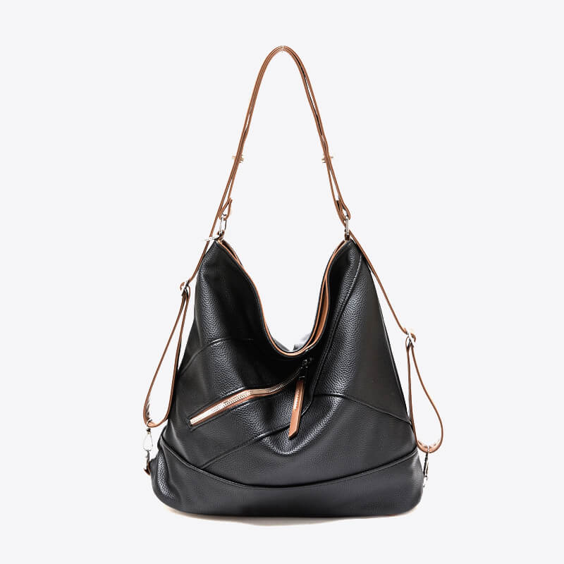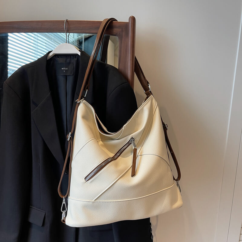 Denna mångsidiga axelväska är tillverkad av högkvalitativt syntetiskt läder och erbjuder en stilren och funktionell lösning för din vardag. Med sin genomtänkta design kan väskan enkelt anpassas till olika bäralternativ, vilket gör den perfekt för både arbete och fritid. Oavsett om du föredrar att bära den som en axelväska, ryggsäck eller handväska, kommer denna väska att passa dina behov.