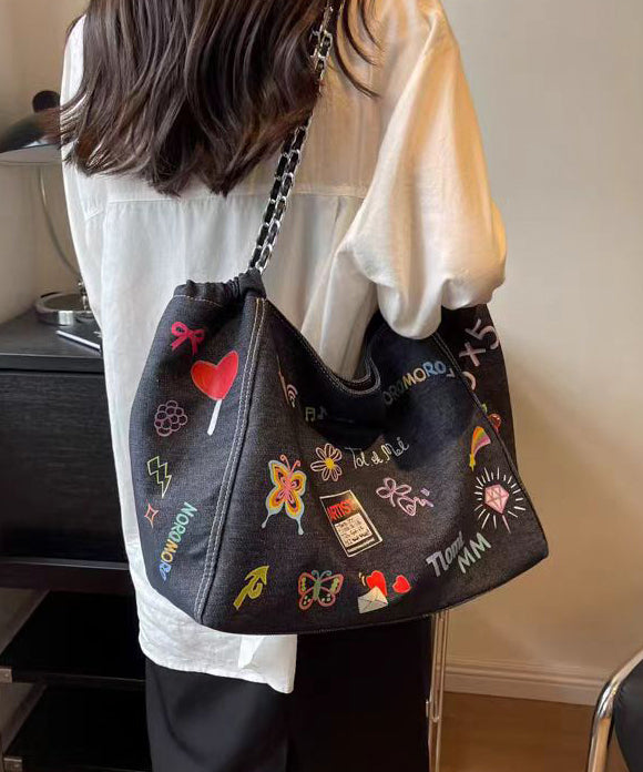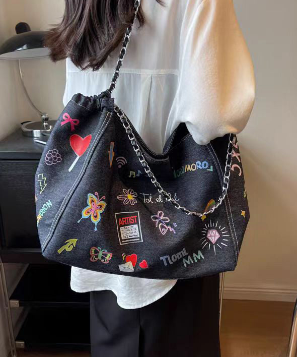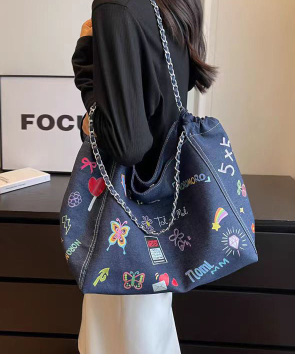 Denim Satchelväska för Damer med Stor Kapacitet