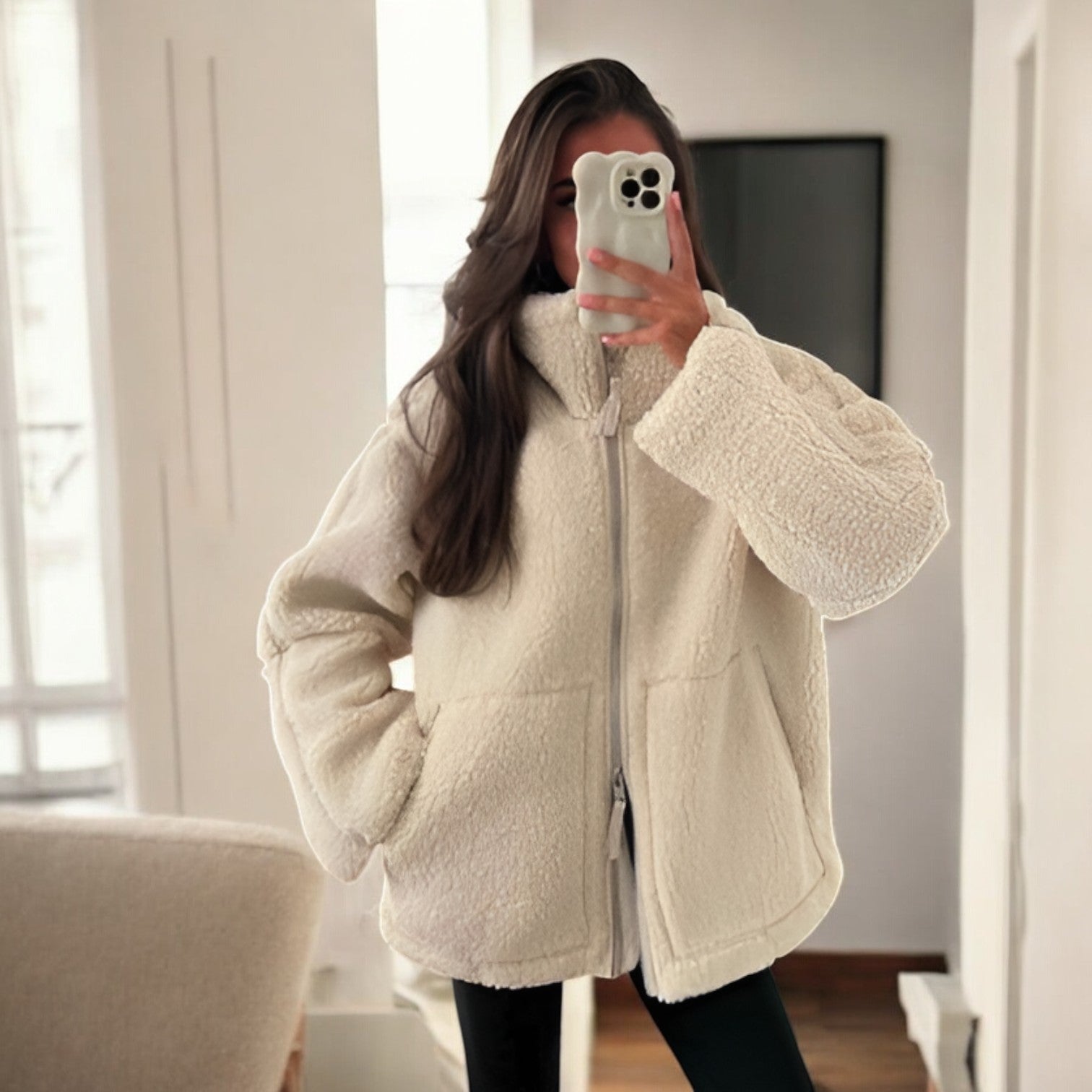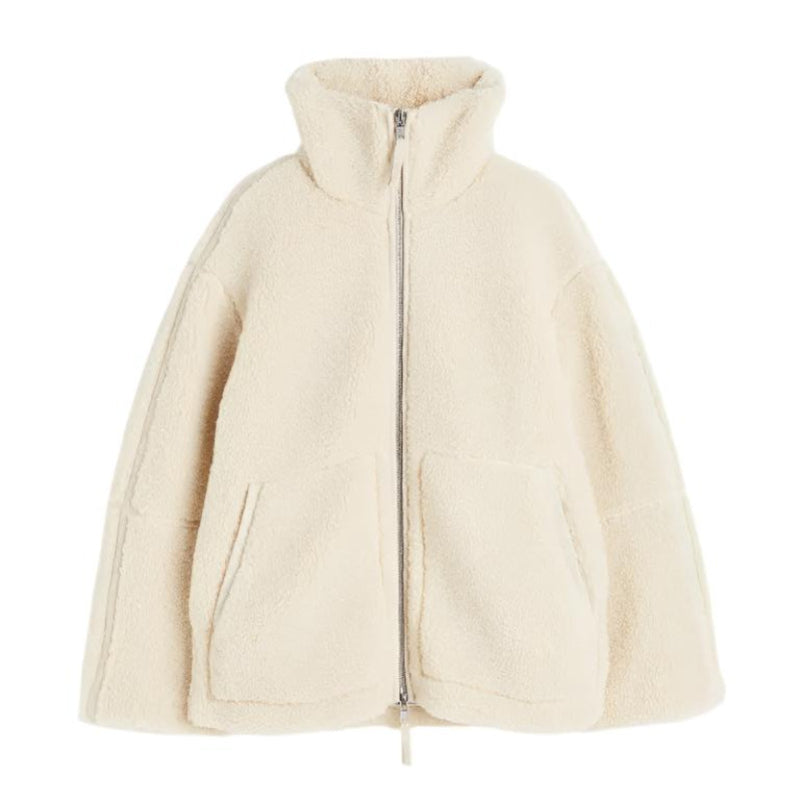 Denna damjacka har oversized passform och ståkrage. Jackan har dragkedja framtill och en enkel design som kan användas vid olika vardagliga tillfällen.