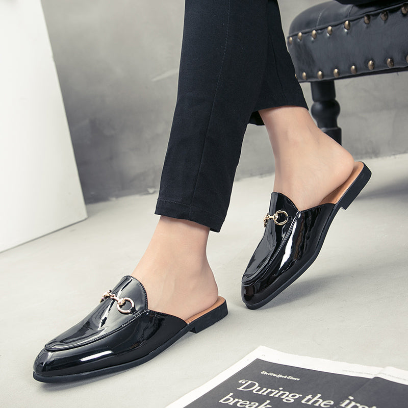 Dessa loafers i patentläder är utformade med fokus på en smal silhuett och dekorativ metalldetalj framtill. De passar olika tillfällen, från vardagliga aktiviteter till mer formella sammanhang.