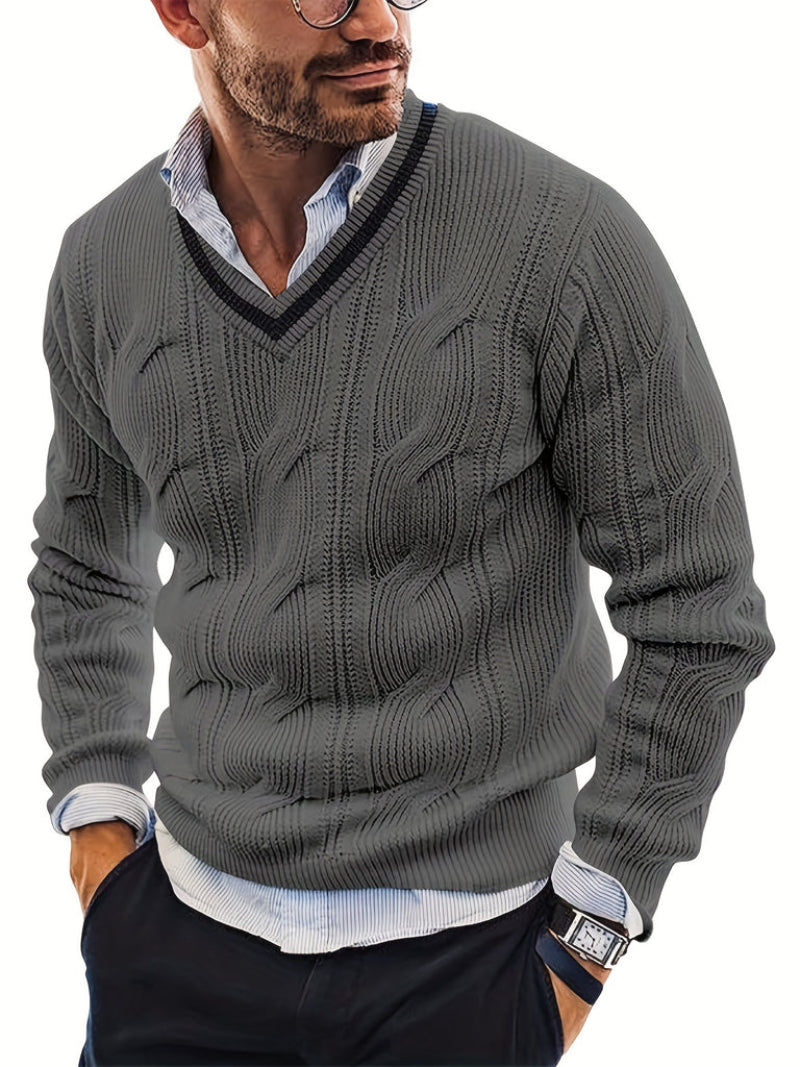Klassisk Virkad Tröja för Herrar med Vintage Stil