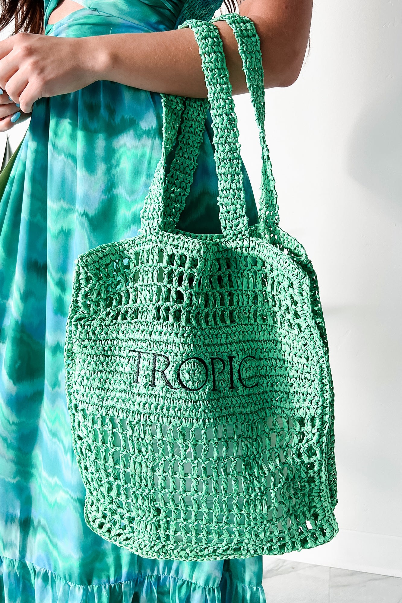 Denna halmtotebag är perfekt för sommarens äventyr och ger en avslappnad, tropisk känsla. Med sitt flätade design och axelhandtag är den både funktionell och stilren, vilket gör den till ett utmärkt val för strandbesök eller shoppingturer.