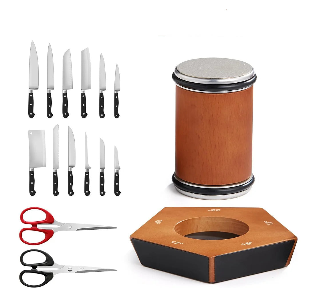 Denna manuella knivslip är avsedd för att slipa köksknivar på ett praktiskt sätt. Med rullmekanism kan knivarna slipas utan vatten eller elektricitet.