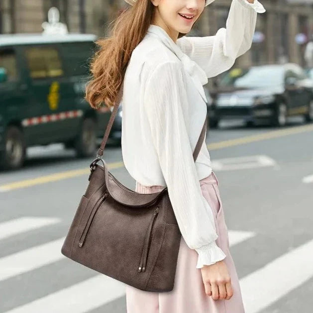 Nyxara - Veganskt Läder Rymlig Axelremsväska med Dubbel Dragkedja för Dam