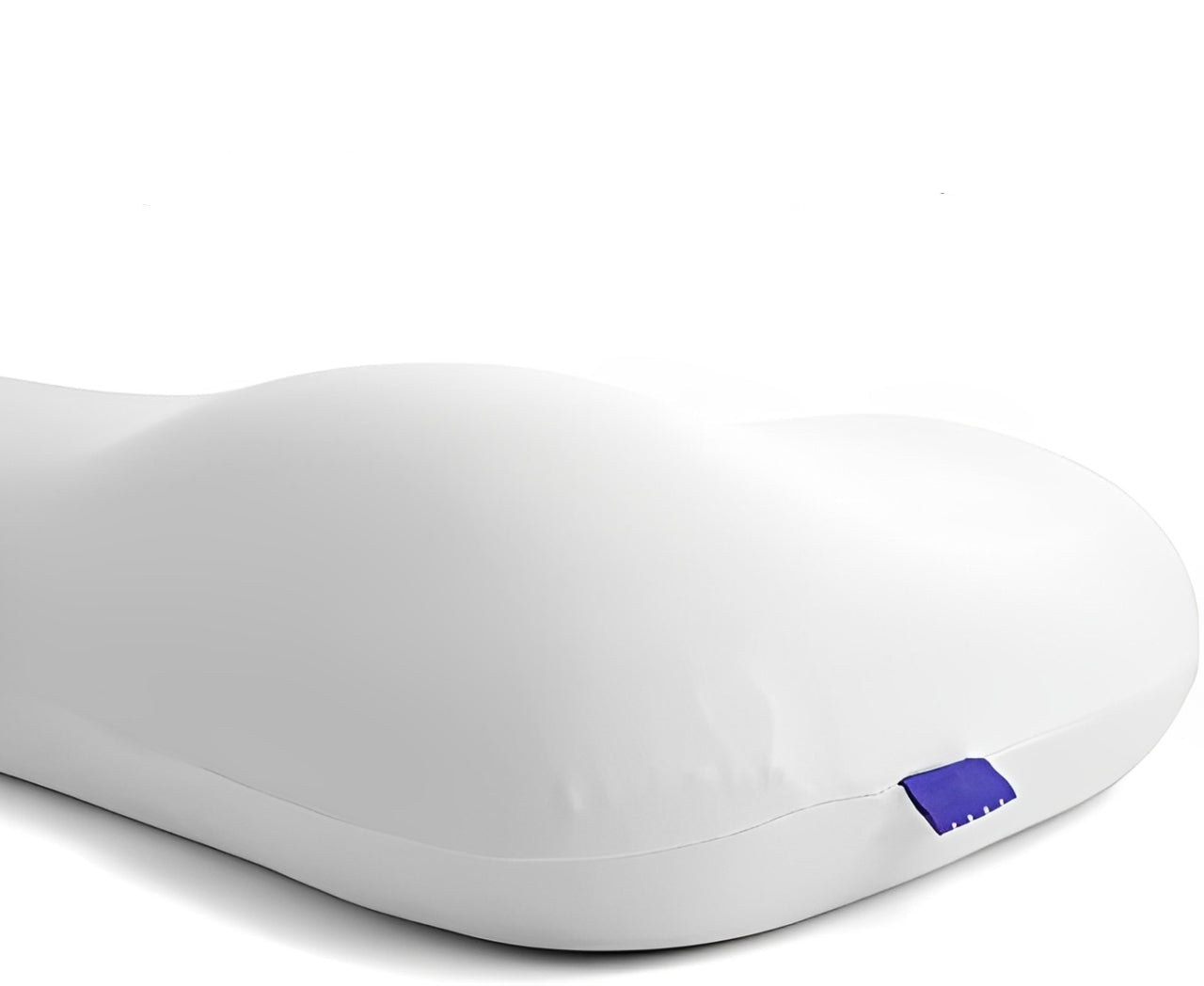 Denna kudde har en tvålformad design och kan användas vid resor. Den är lätt och kompakt för enkel transport.